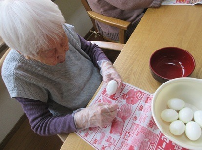 ある日の、ゆでたまごの殻剥きのお手伝い。