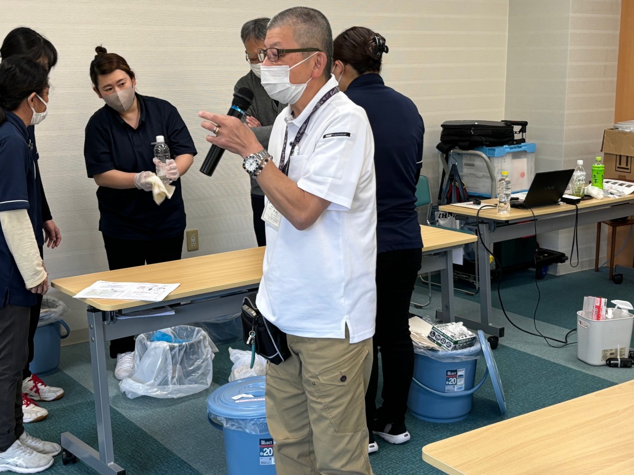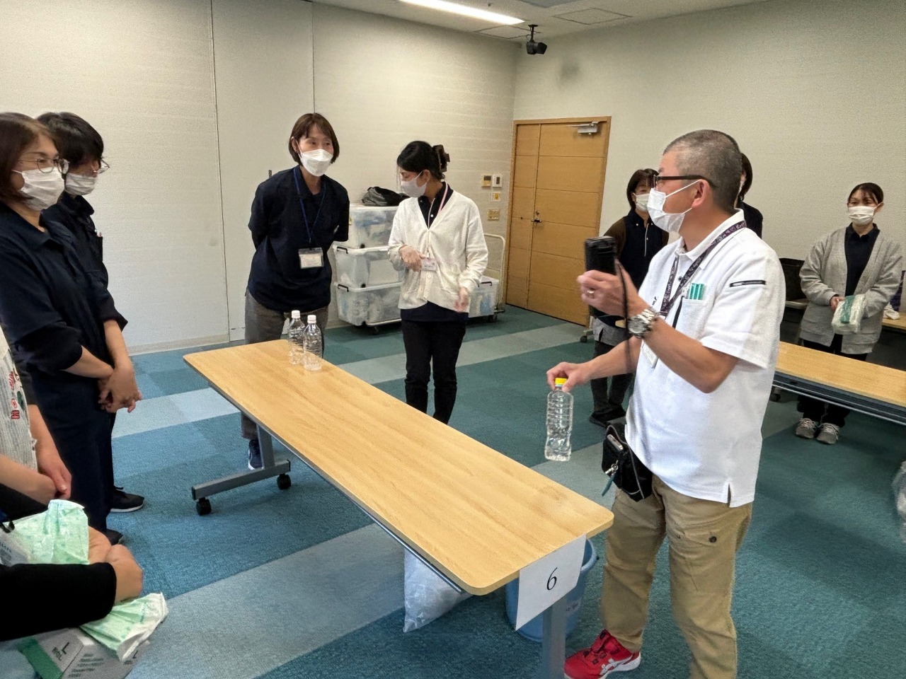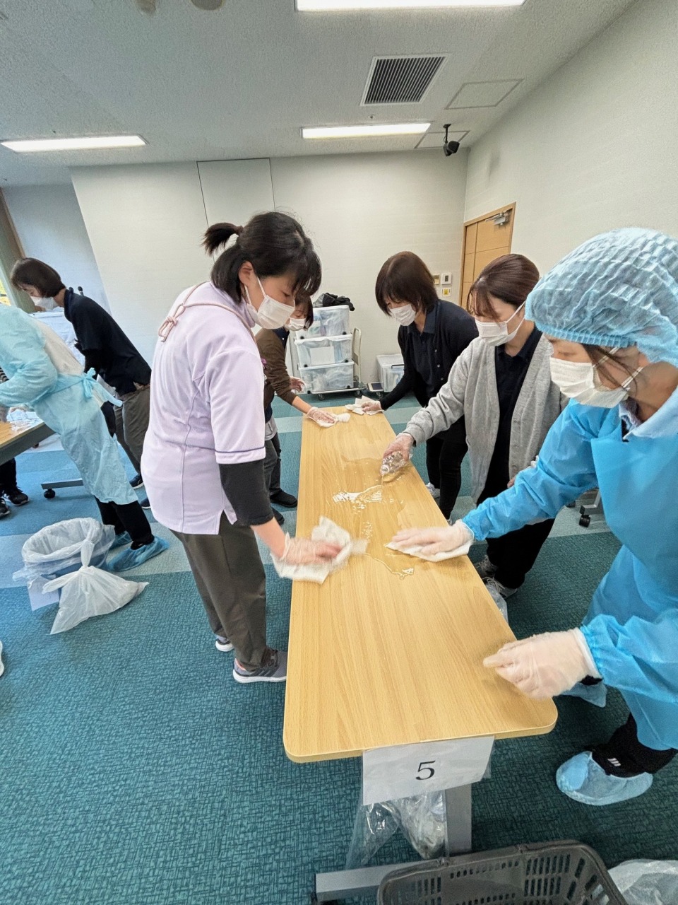 グループの中から1名処理対応する職員を決め、予防着を着用しました。