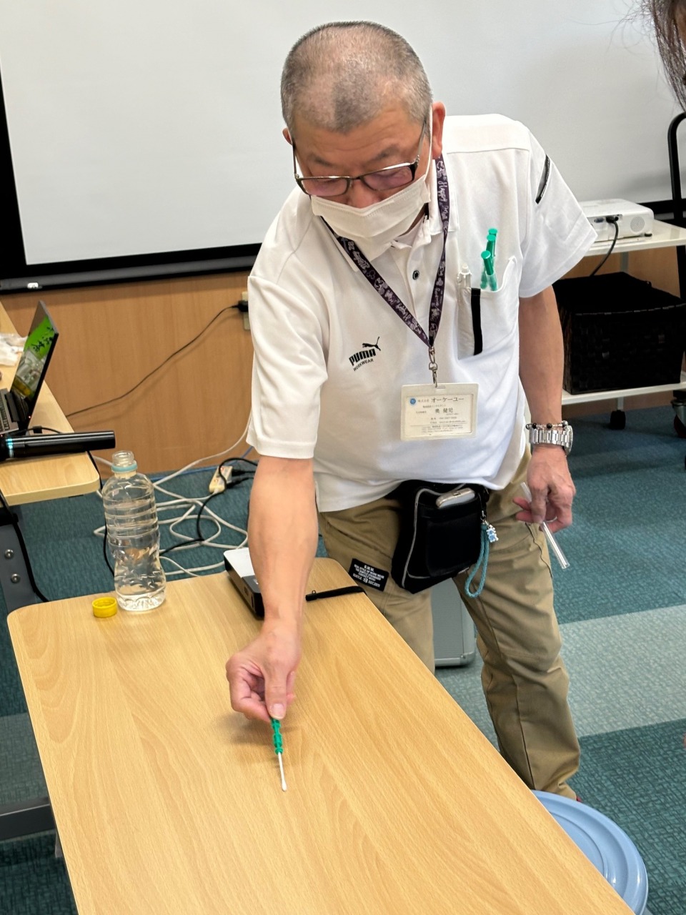後半は実際に「アクセル」除菌洗剤を用い、嘔吐時の処理方法について