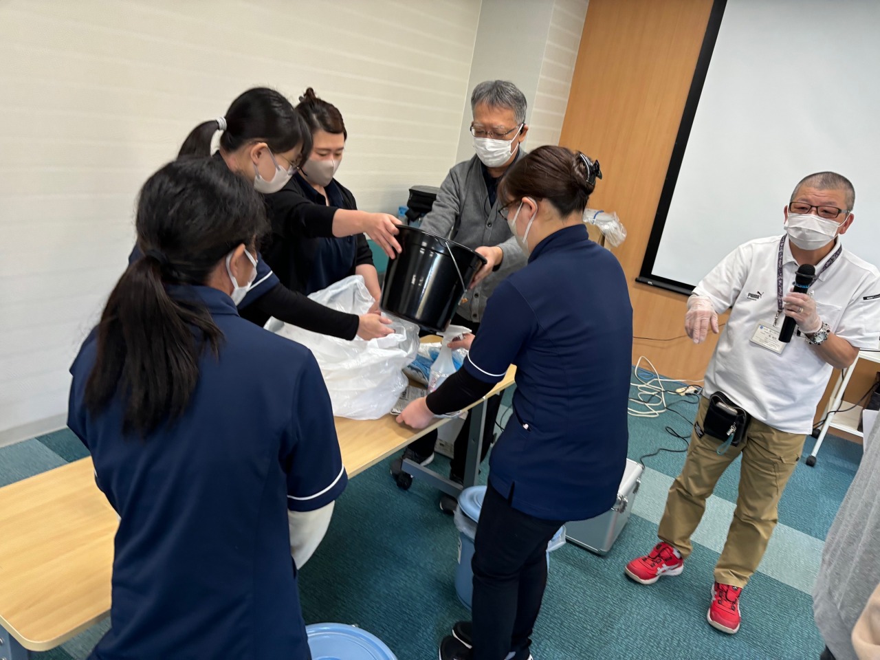 その職員を中心に、嘔吐物の処理を進めていきます。