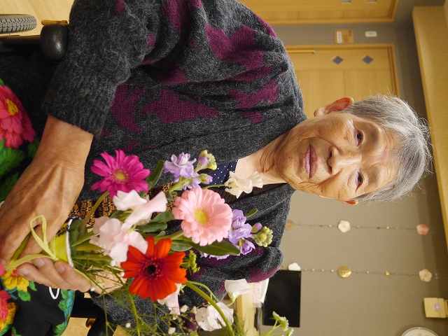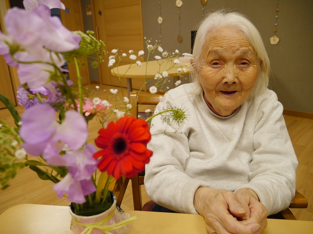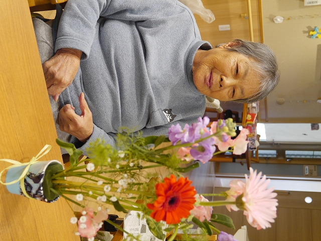 スイートピーがとてもきれいでいい香りがして、ご利用者も鼻歌を唄いながら活けていらっしゃいました。