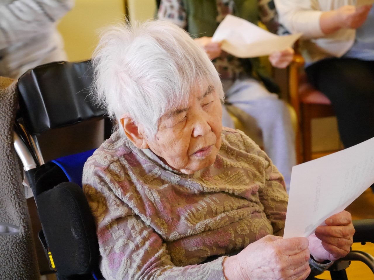 歌詞カードを見ながら上手に歌われてました。
