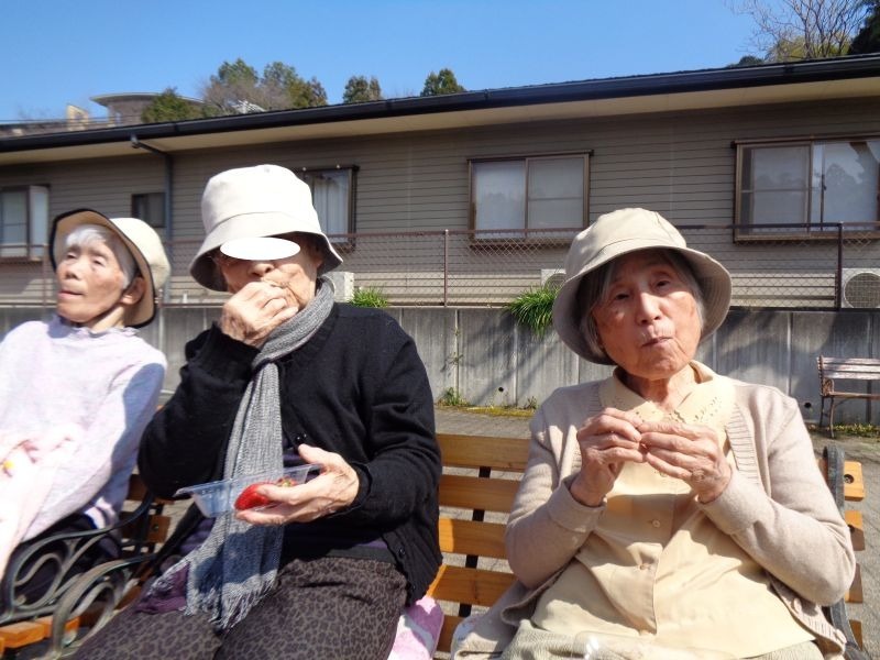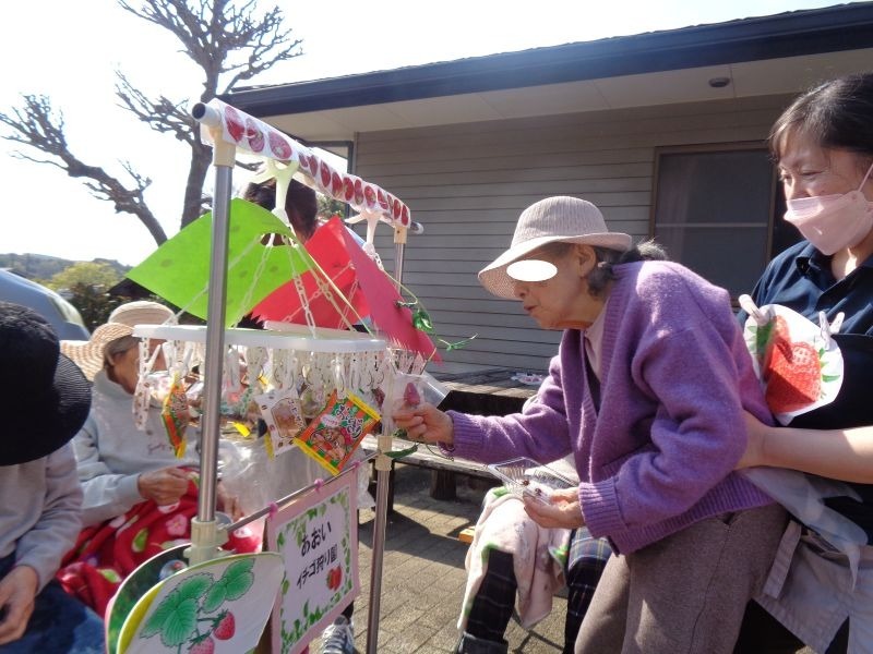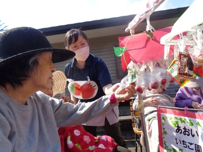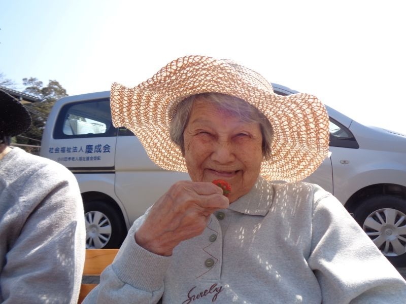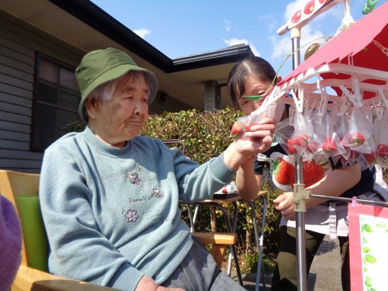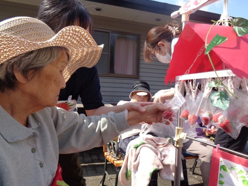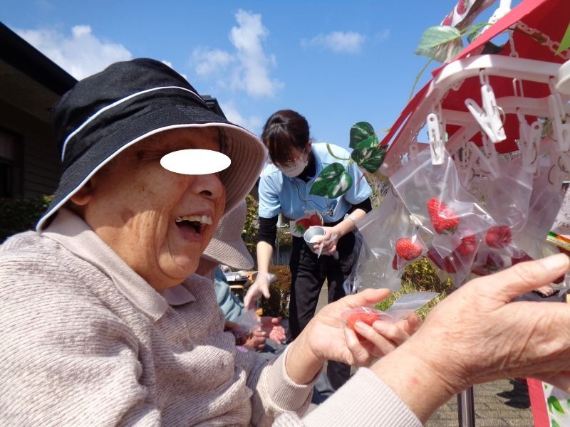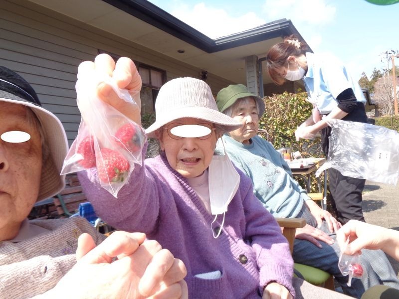 先日、施設の敷地内でいちご狩りを行いました♪
