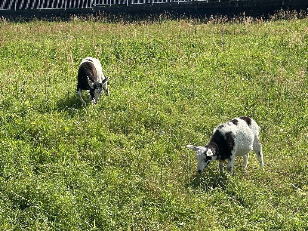 田んぼにも草が生えだし、やぎたちも黙々と食べて