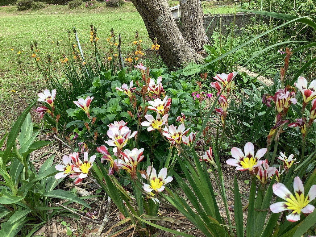施設北側の花壇に色々な花が咲いてきれいなので