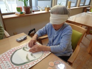 職員からプレゼント、メッセージカードをもらって、「うれし~」と喜んで頂けました。