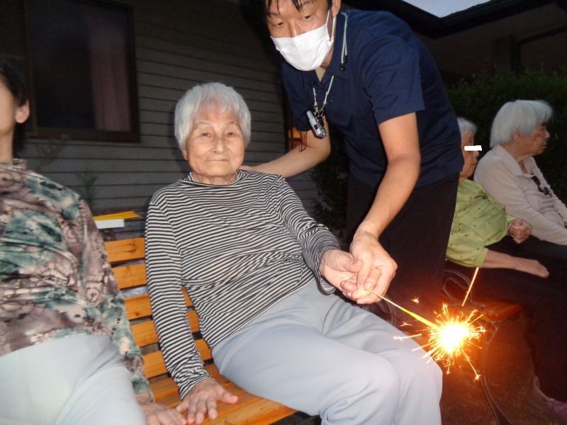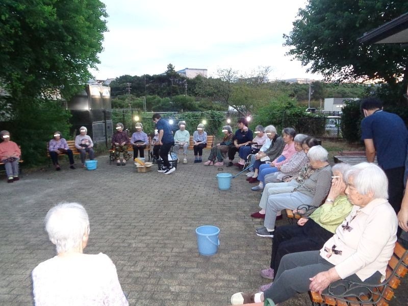 いつもなら夕食を終え、施設の中で静かに就寝の準備を始める時間帯に、まだ皆さんと屋外にいる特別感。素敵な時間でしたね!