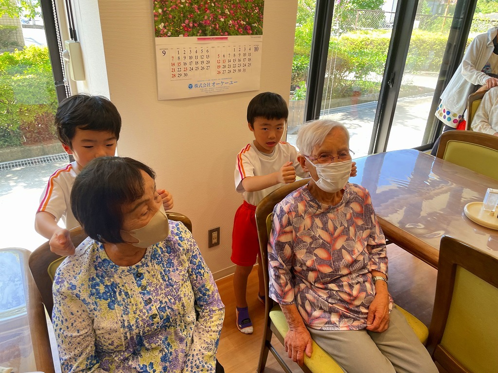 小さな手で肩たたきをしてくれました。皆さん喜んでいました。