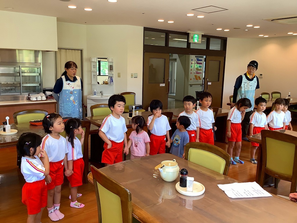 利用者方々と一緒の歌を歌いました。園児が肩たたきの歌を歌いながら