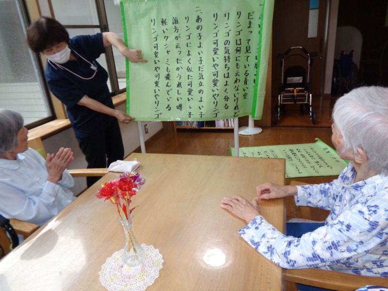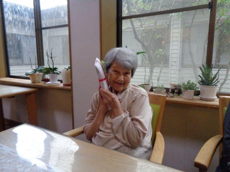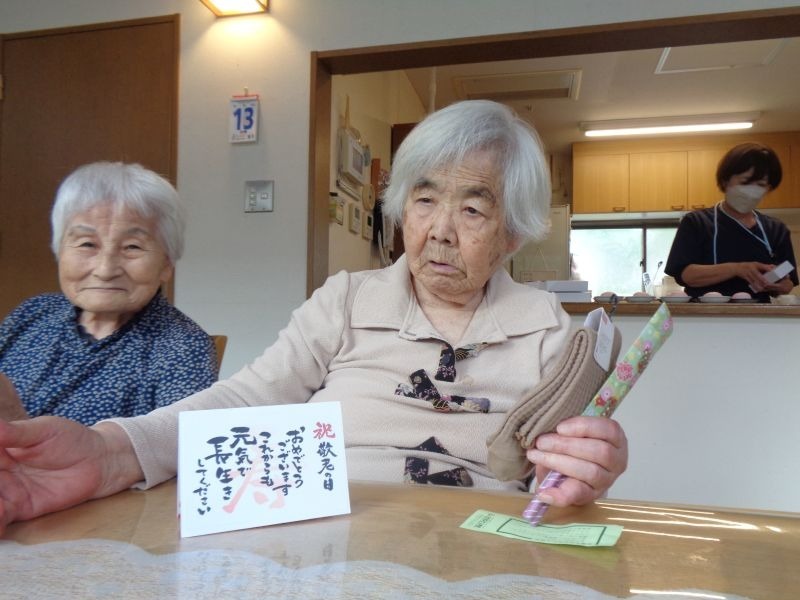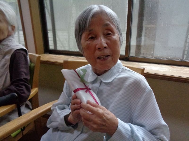 その後は皆さんで歌を歌い、ささやかではありますがプレゼントと紅白のお饅頭を贈呈させていただきました。