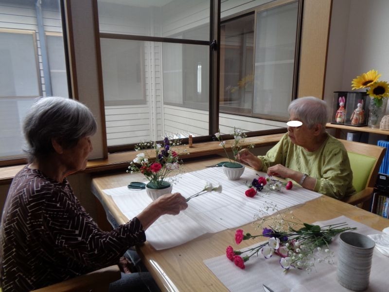 こちらは生け花!オアシスや花瓶にきれいに生けてくださいました。
