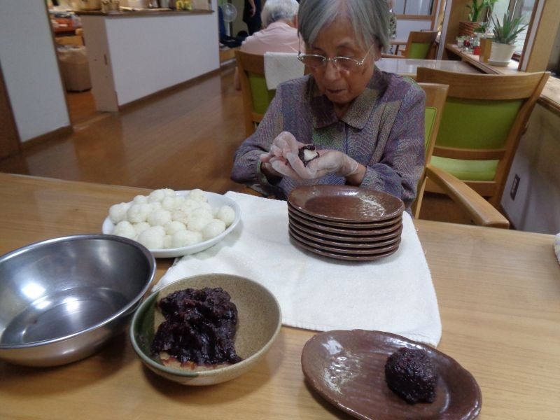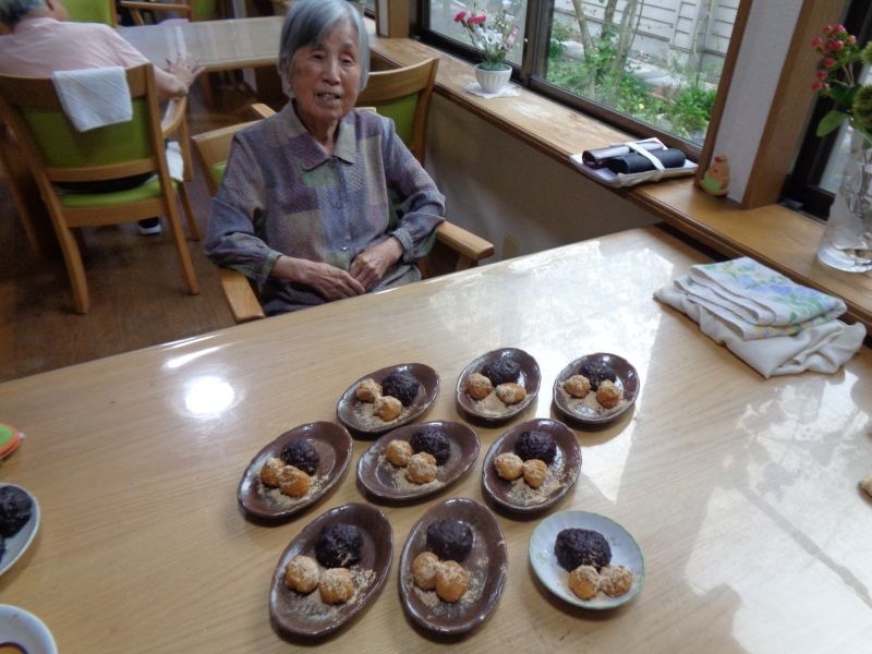 お彼岸の時期にはおはぎを作って皆さんで召し上がりました。