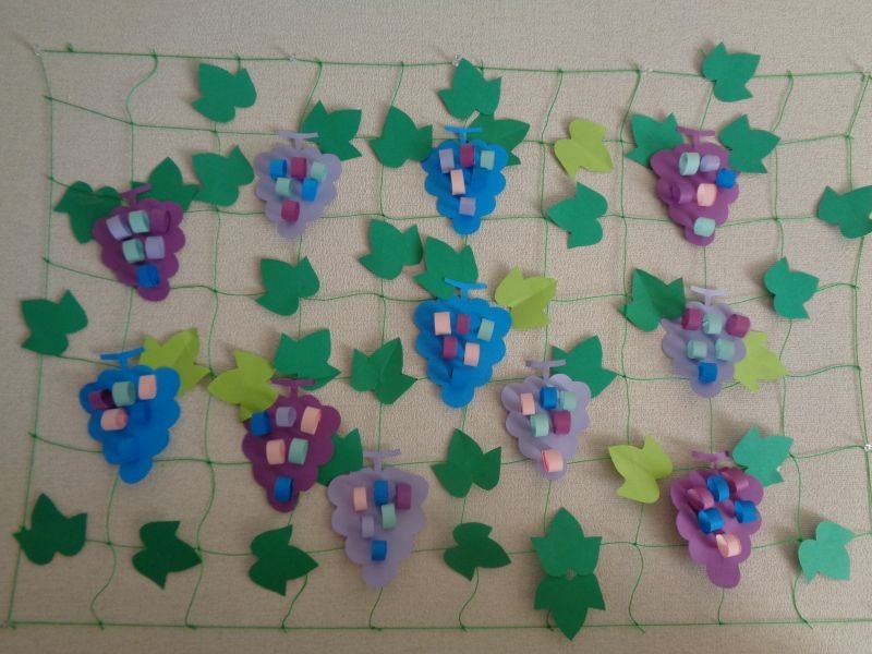ぶどうの壁画と秋桜の壁画を頑張って作りました。