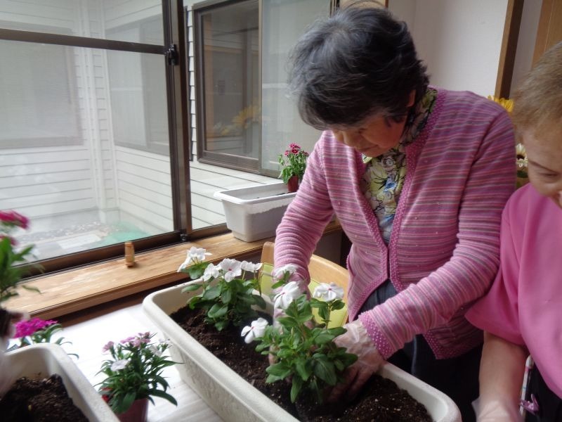 「大きく育ってね!」と優しく土をかぶせながら声をかけていました。