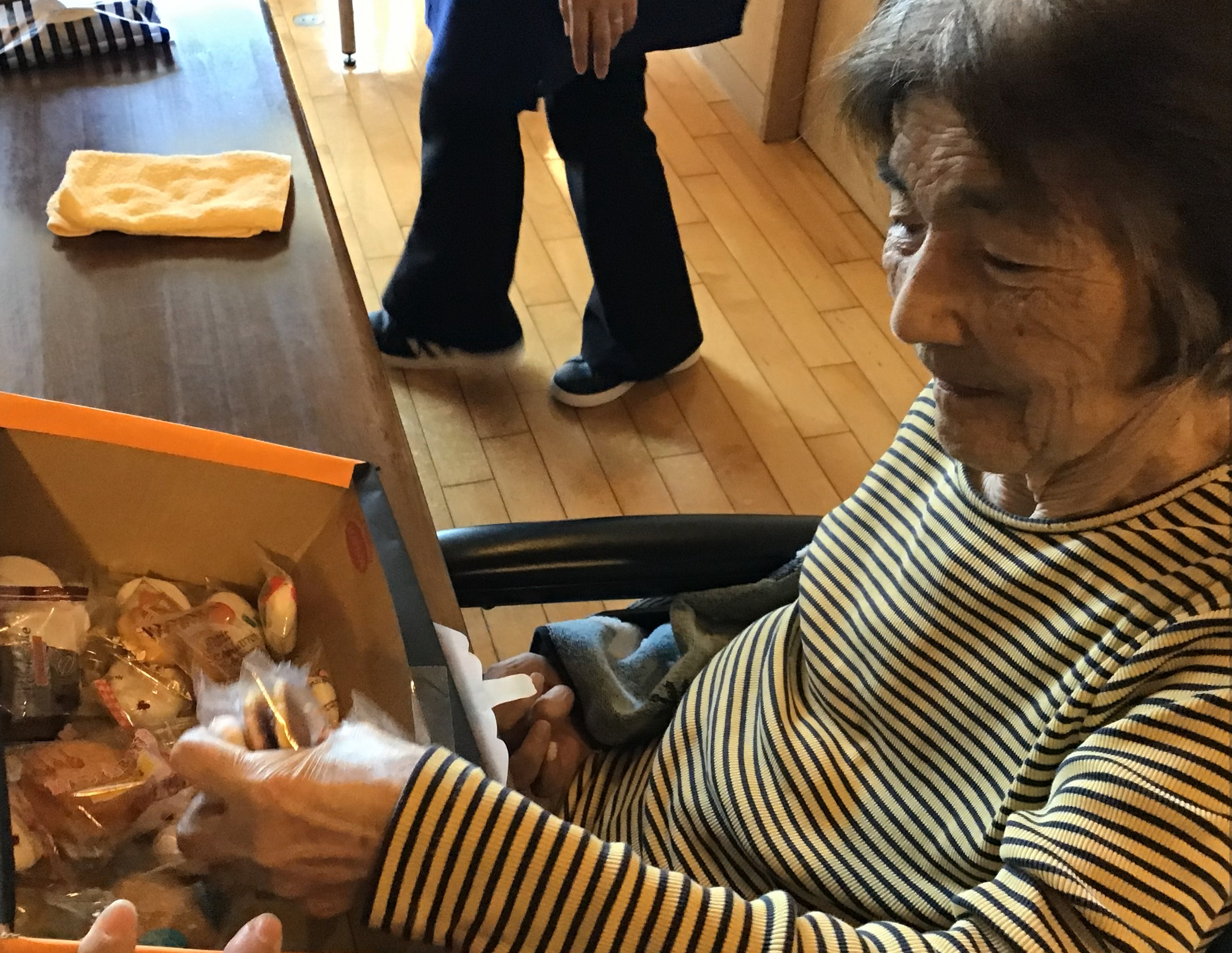 10月の終わりにハロウィンもかねてお菓子のつかみ取りレクを行いました!