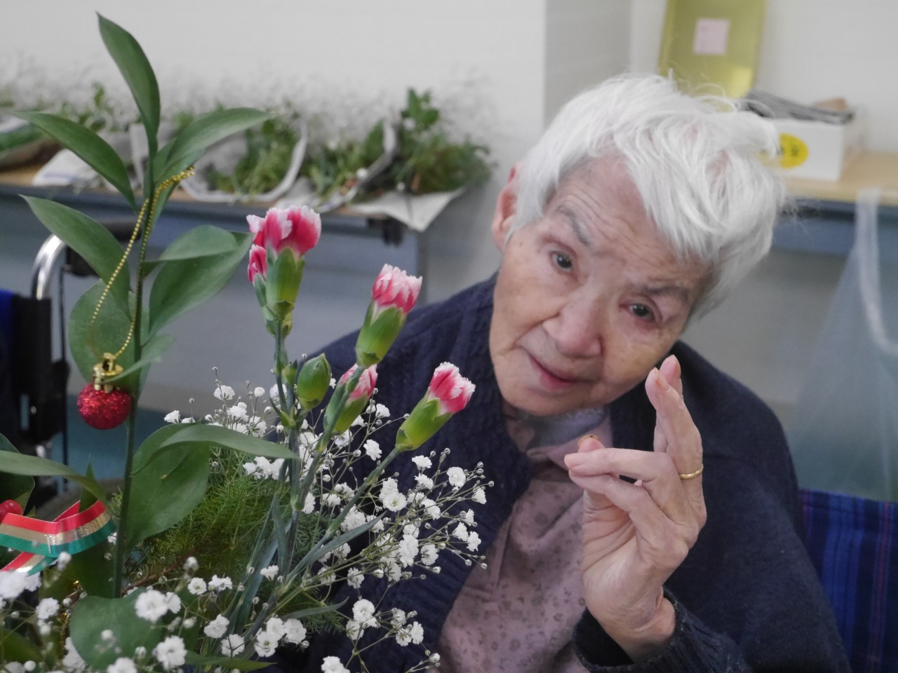 リボンなどで、皆さんクリスマスらしく素敵に生けていらっしゃいました(^^)