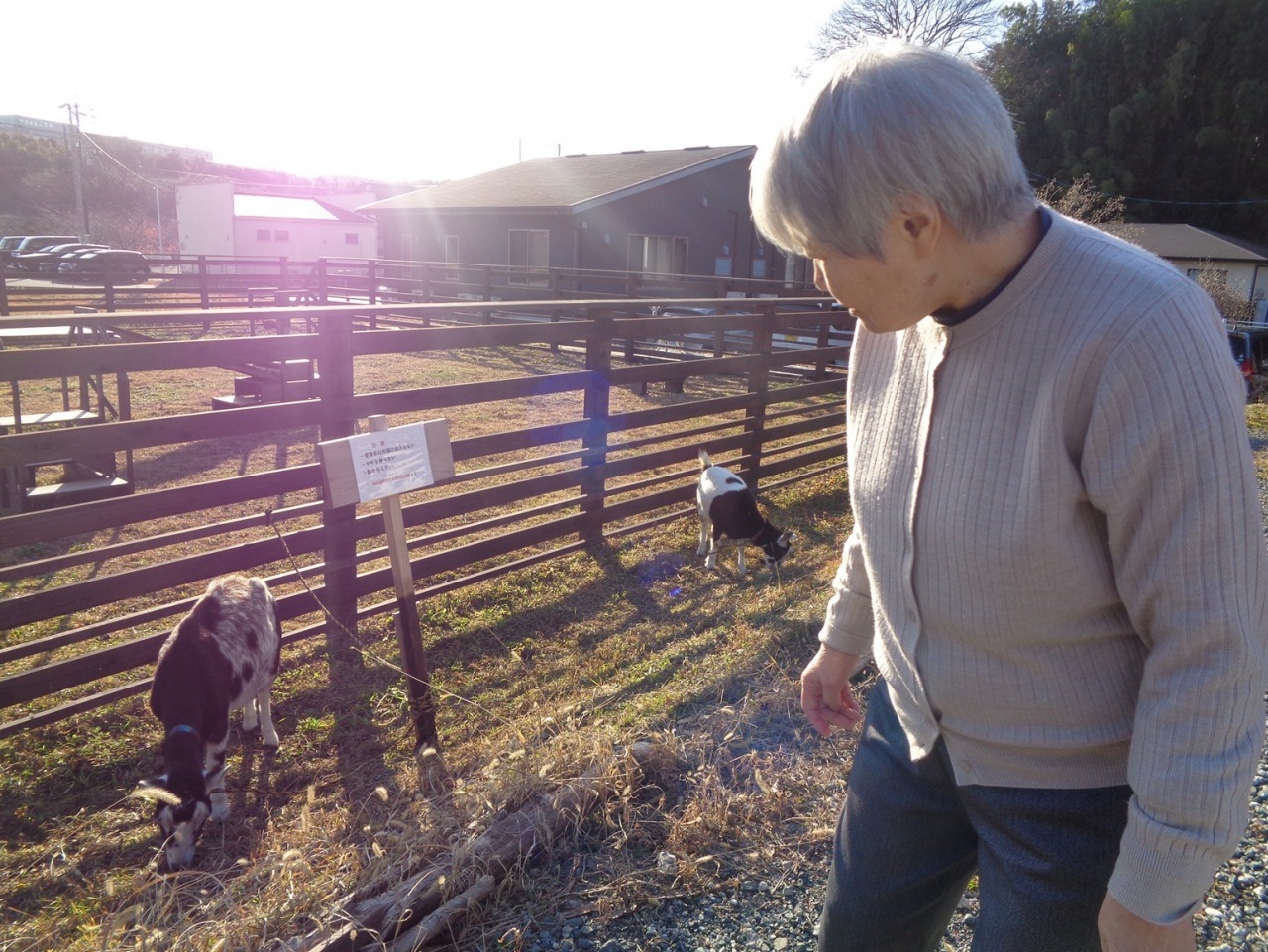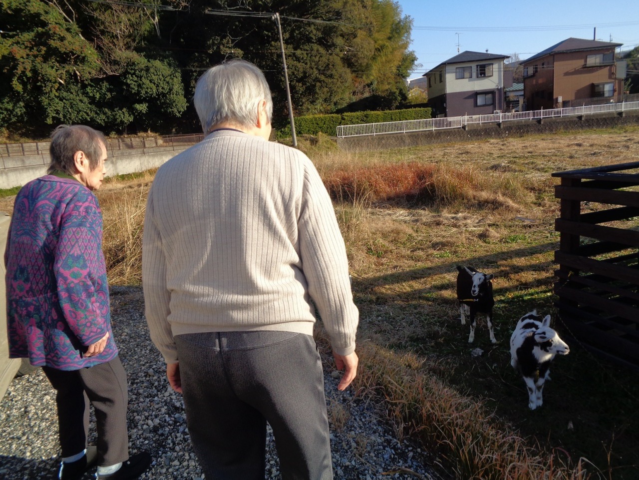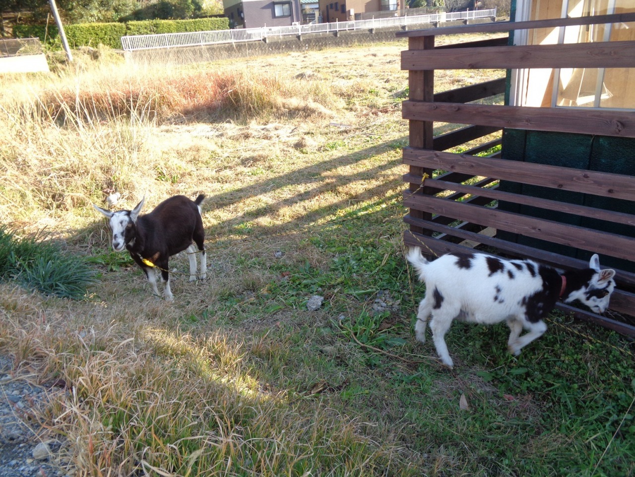 可愛いヤギさんたち、今日は柵から出て開放中です。