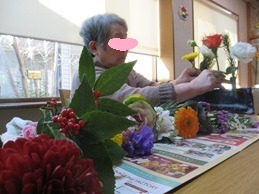 お正月用のお花たくさんを、泉館の利用者様で分担し、生けました。